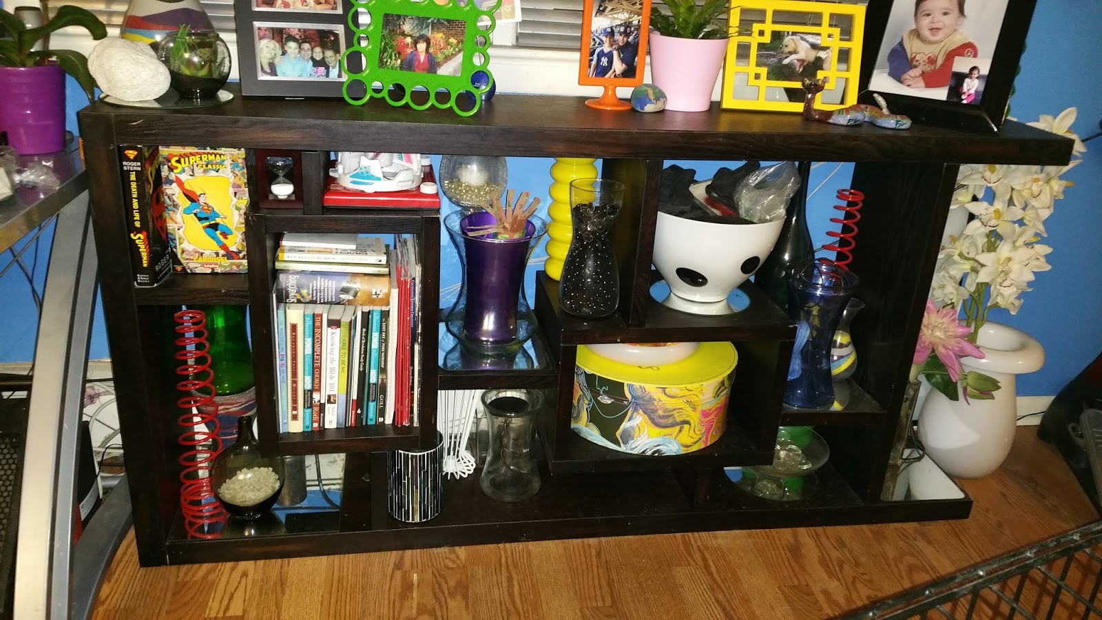 I have to 2 shelving units in my “Blue room” that we use to store